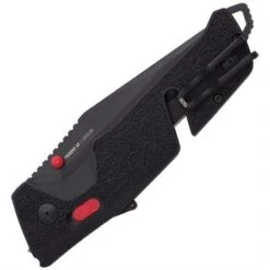 Model – SOG12610157. SOG 12610157 – Pentagon XR Lock Blackout. 4.75″ (12.07cm) closed. 3.63″ (9.22cm) black oxide coated CTS-XHP stainless spear point blade. Black G10 handle. Thumb stud. Pocket clip. Extended tang. Boxed. Made in Taiwan.