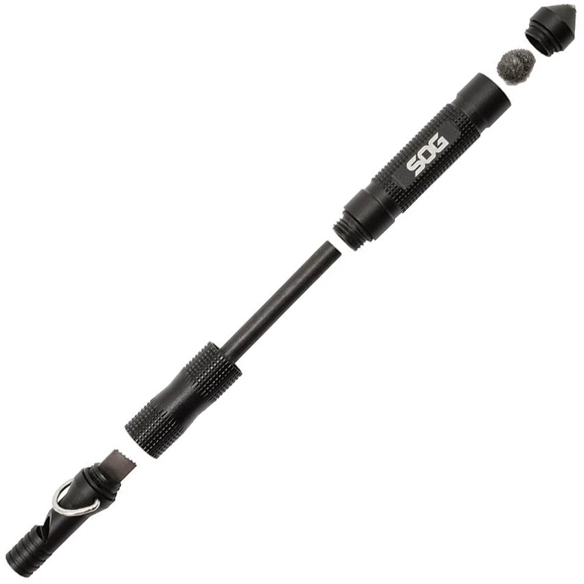 SOG Black Multi Tool Flint Emergency Glass Breaker Whistle Ferro Rod Key Chain FT1001CP