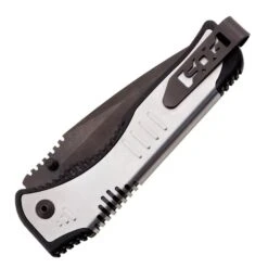 Arc lock. Assisted opening. 4.5″ closed. 3.5″ satin finish 8Cr13MoV stainless clip point blade. Black GRN handle. Thumb stud. Lanyard hole. Reversible pocket clip. Clam packed.