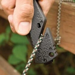 Assisted open. 8.5″ overall. 3.75″ AUS-8 hardcased black Tini partially serrated clip point blade. Black GRN (glass reinforced nylon) handle with integrated seat belt cutter. Piston lock. Reversible low carry pocket clip.